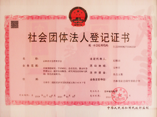 吉林省應(yīng)急管理學(xué)會登記證書
