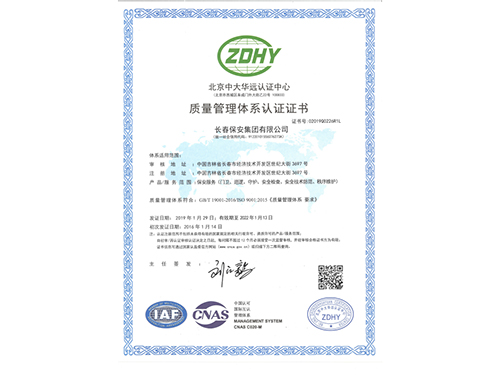 質(zhì)量管理體系認(rèn)證證書