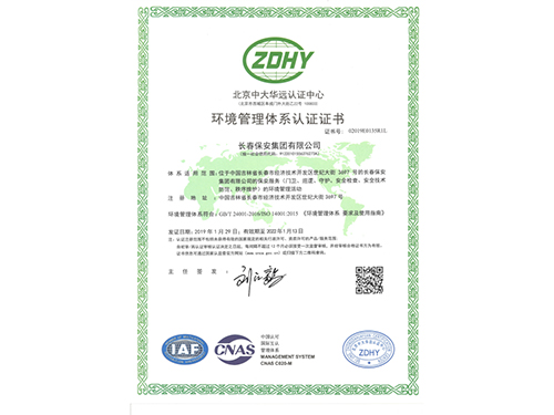 環(huán)境管理體系認(rèn)證證書